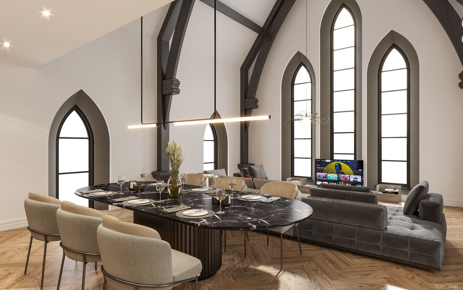Thanks to the building’s church origins, apartments benefit from features you simply won’t find in standard new-builds. Depending on